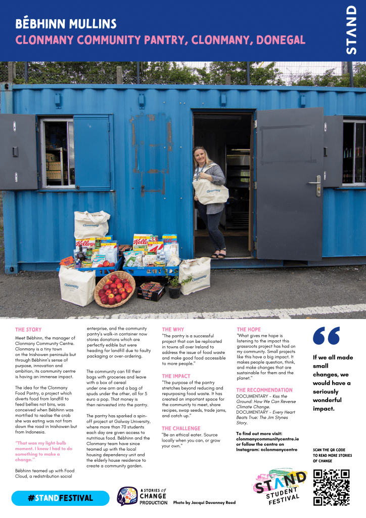 Clonmany Community Centre has been working alongside FoodCloud since 2018 helping to place a focus on food waste. Through this connection, the Community Pantry Network was established in 2022, and in Inishowen alone we have collected and redistributed over 73,000 kg of food (equivalent to approximately 179,000 meals) and achieved 233,700 kg of CO2 savings.